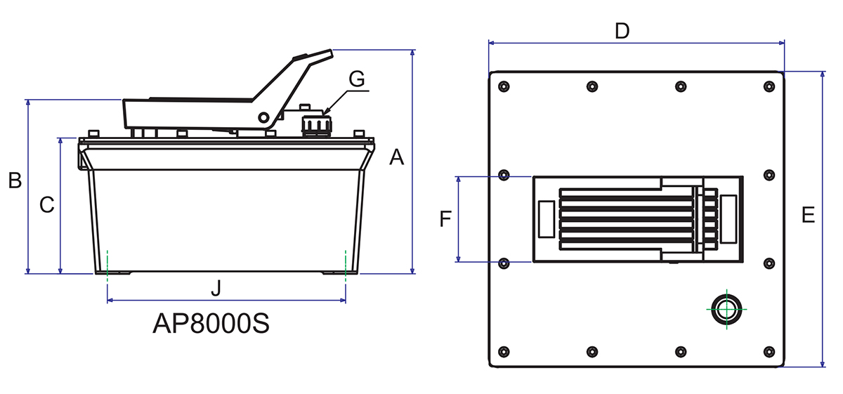 Bơm thủy lực khí nén AP 8000 thuộc dòng AP series của BETEX, dùng khí nén 5–8 bar để tạo áp lực thủy lực lên đến 700 bar. Hai biến thể gồm AP 8000S (tác động đơn) và AP 8000D (tác động kép), phù hợp cho xilanh một chiều và hai chiều. Thể tích chứa dầu lớn tới 7200 cm³, phù hợp cho nhiều công việc ép, nâng, thử tải hoặc tháo lắp công nghiệp.